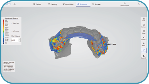 Натуральные цвета челюстей, детализированное воспроизведение элементов, мгновенное переключение цветовых схем и комплексный анализ данных модели.